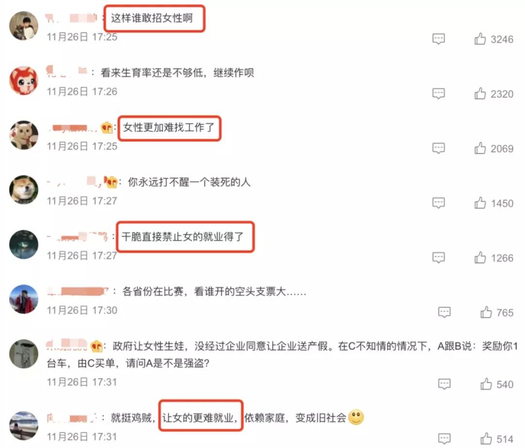 產(chǎn)假延長政策一經(jīng)出臺,網(wǎng)友們也是炸開了鍋,紛紛留下評論,表達(dá)“女性將更難找工作了”。作為HR,看到真是有點(diǎn)扎心。