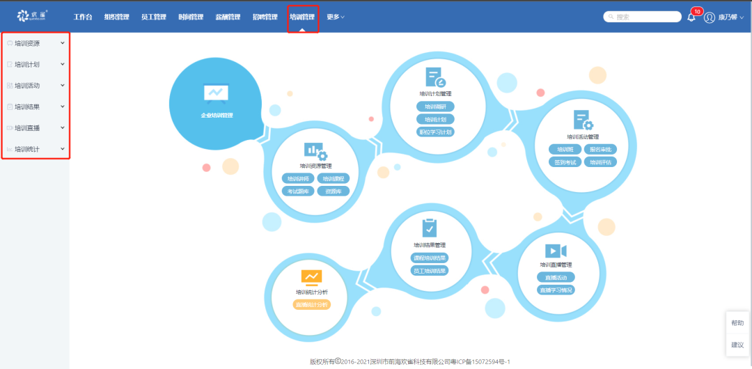 培訓(xùn)管理:歡雀平臺(tái)支持企業(yè)搭建專屬在線培訓(xùn)平臺(tái),員工可以隨時(shí)隨地靈活學(xué)習(xí);員工可以根據(jù)自評(píng)和上級(jí)經(jīng)理的評(píng)價(jià)結(jié)果進(jìn)行選課和個(gè)人能力發(fā)展規(guī)劃的設(shè)計(jì);支持講師,學(xué)員雙向評(píng)價(jià),助力企業(yè)打造精品課程!