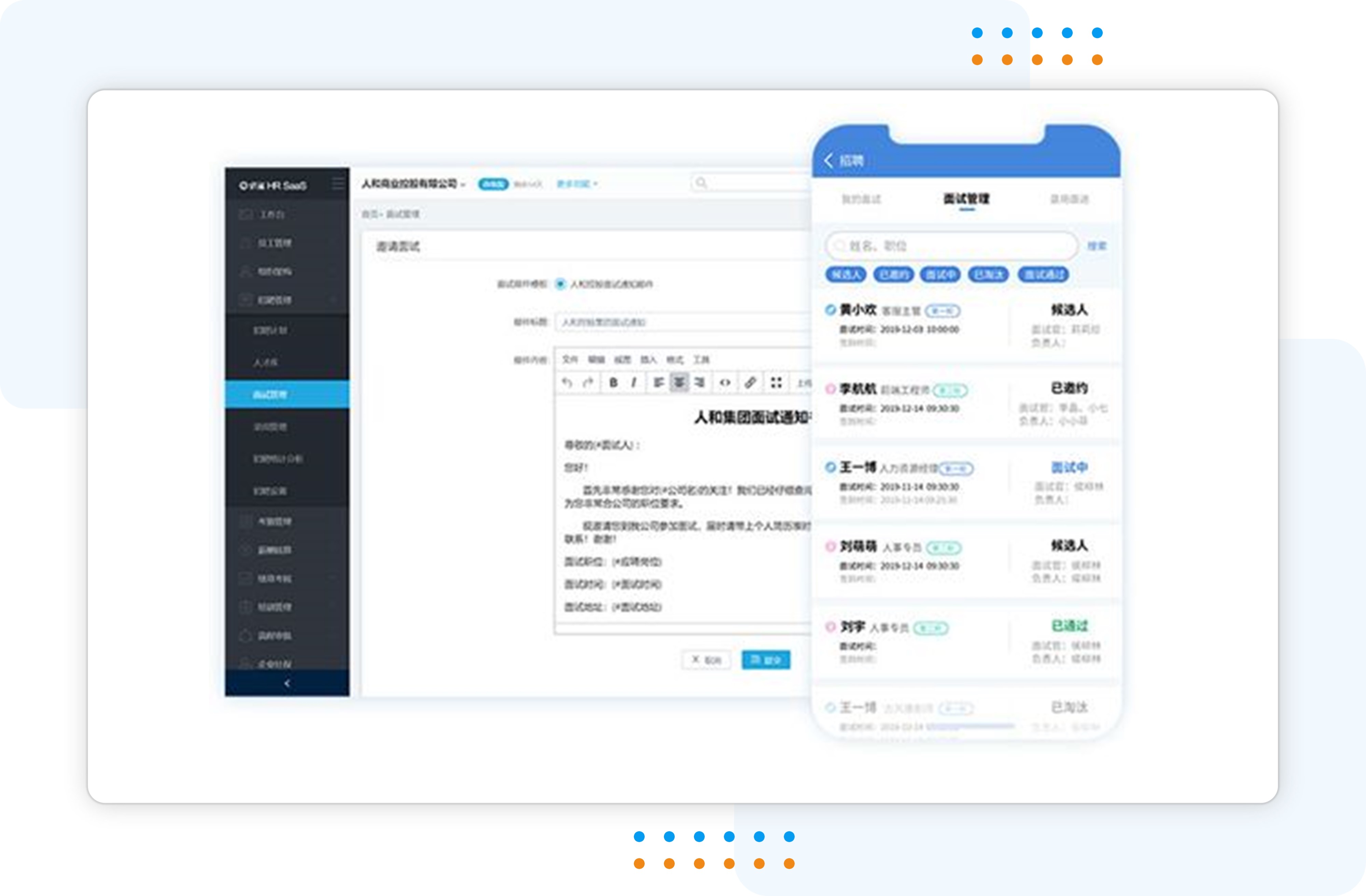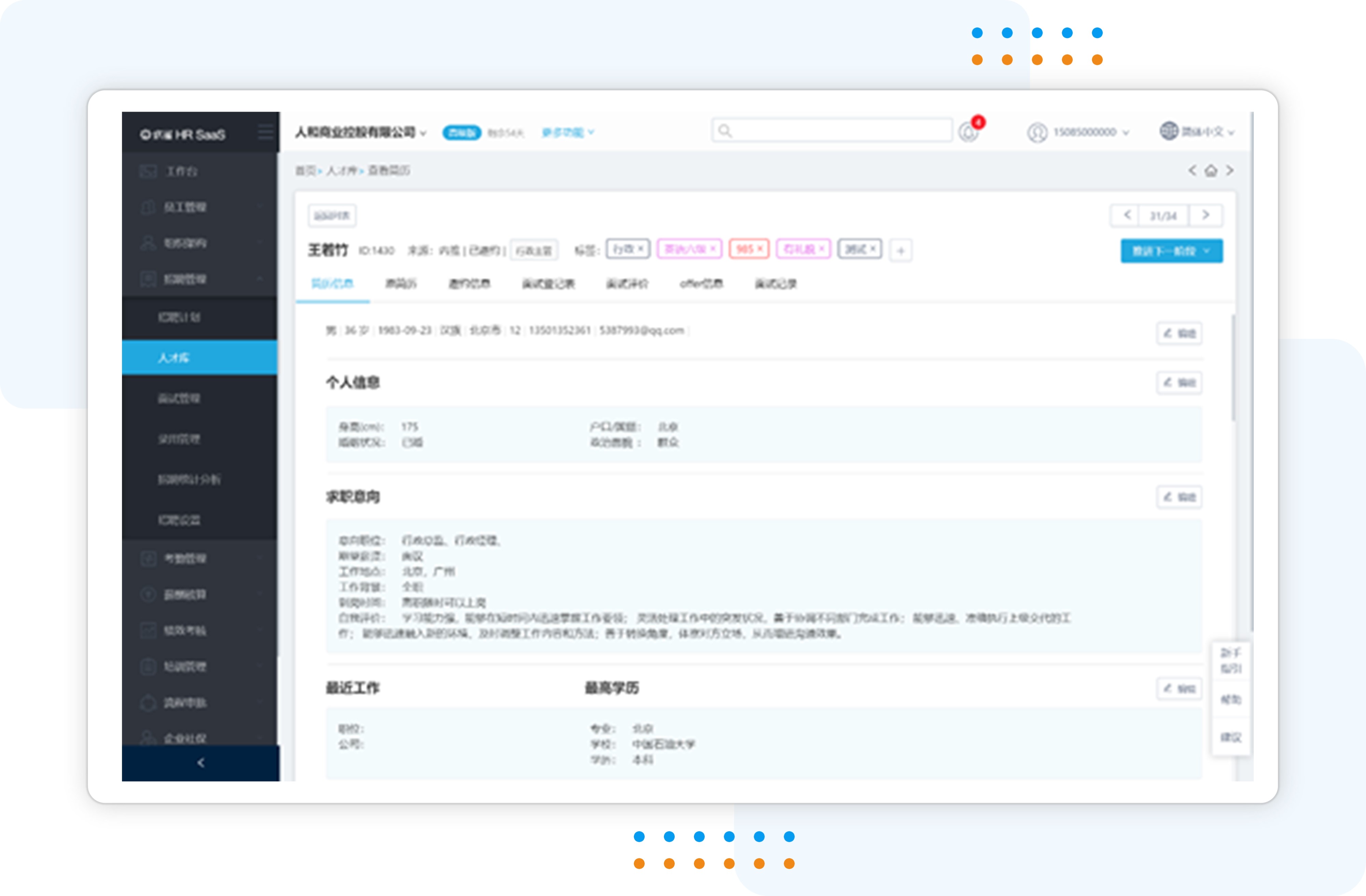 Huanque empowers enterprise human resources services with science and technology by creating an integrated HCM solution required by the enterprise. HR based on cutting-edge service architecture With SaaS as the core, artificial intelligence and big data technology are applied to realize the intellectualization of human resource management. Help enterprises build an integrated human resources information platform, build a talent supply chain and improve the competitiveness of enterprises' talents. At the same time, it provides data analysis and insight to digitize and visualize per capita effectiveness and organizational ability.