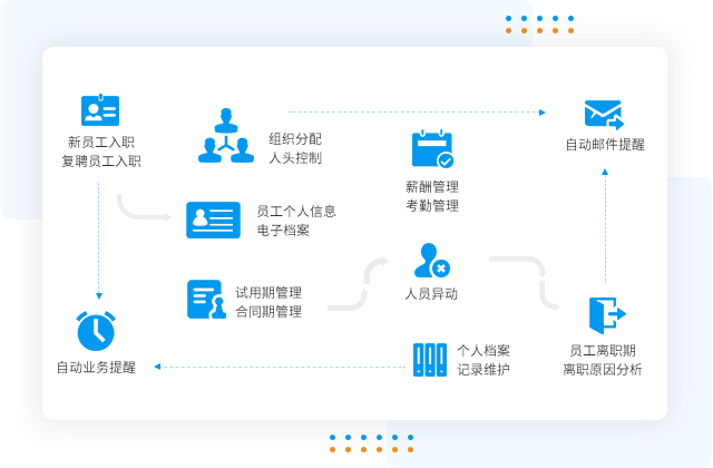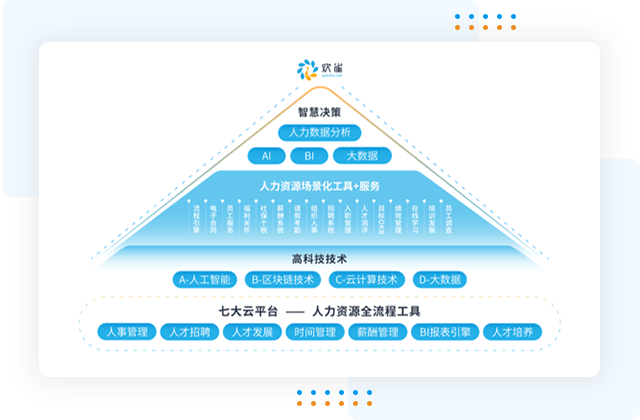提供全場景全流程的核心人力支撐 實現(xiàn)HR全數(shù)字化處理組織、薪酬、假勤等工作 統(tǒng)計分析、借助數(shù)據(jù)洞察企業(yè)管理 移動化、平臺化、生態(tài)化,一站式員工服務